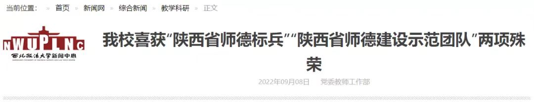 ▲我校喜获“陕西省师德标兵”“陕西省师德建设示范团队”两项殊荣
