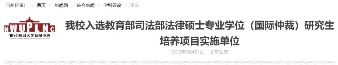 ▲我校入选教育部司法部法律硕士专业学位(国际仲裁)研究生培养项目实施单位