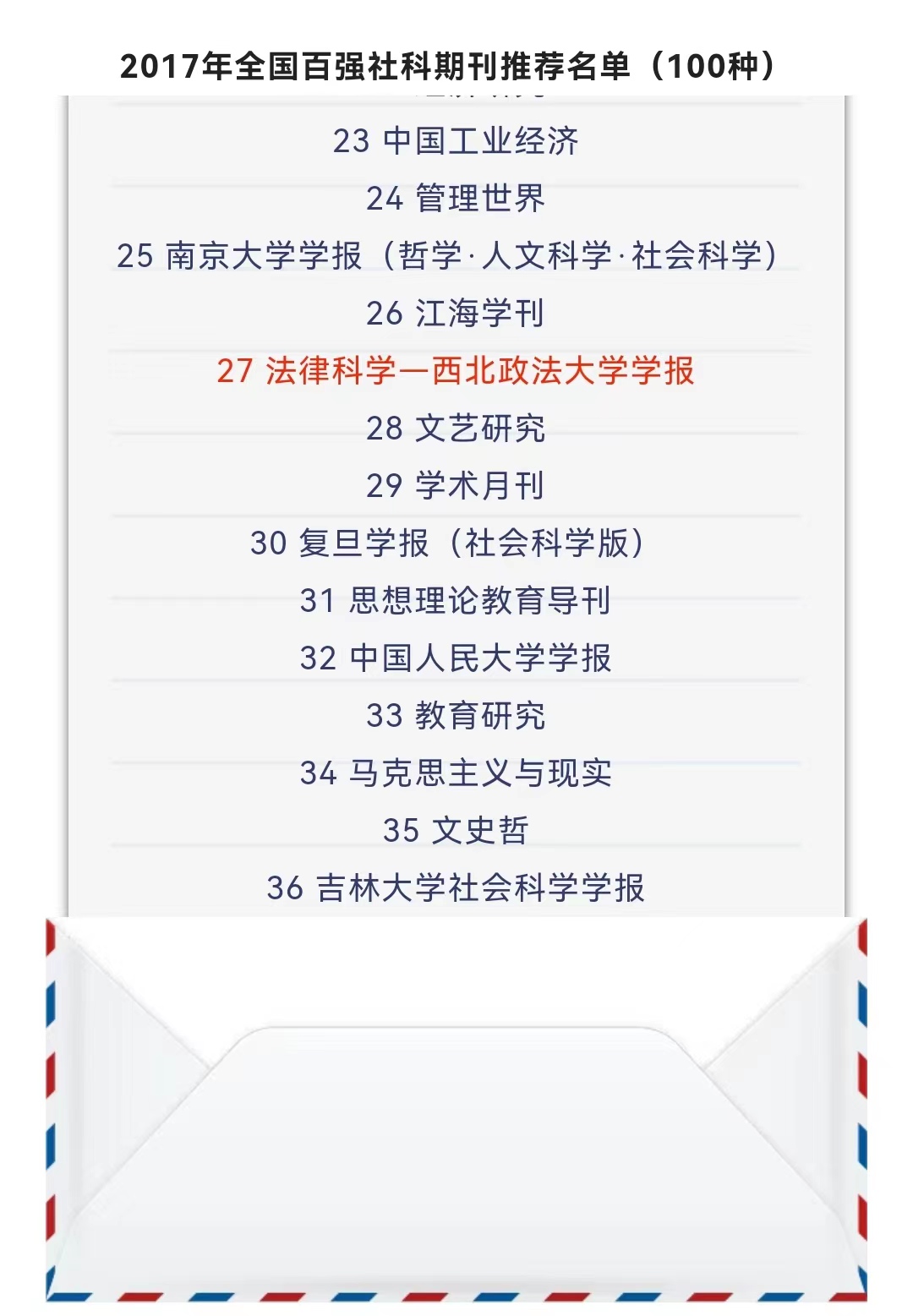 ▲2017年beat365游戏平台学报《法律科学》荣获全国百强社科期刊