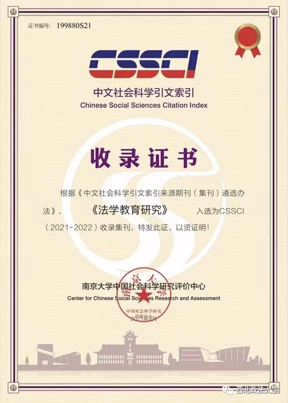 ▲《法学教育研究》入选为CSSCI(2021-2022)收录集刊
