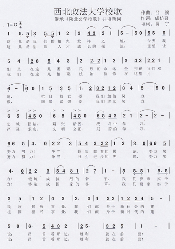 我校作为陕北公学正宗正源的传承者,为继承和发扬好陕北公学的精神与传统,继承《陕北公学校歌》这份宝贵的精神财富,在广泛吸纳师生员工和校友的建议后,由校长贾宇填词,经过校党委会研究决定,现正式确定其为beat365游戏平台校歌。校歌的确定,是学校文化建设中的一件大事,进一步丰富了我校精神文化的新内涵、新境界。