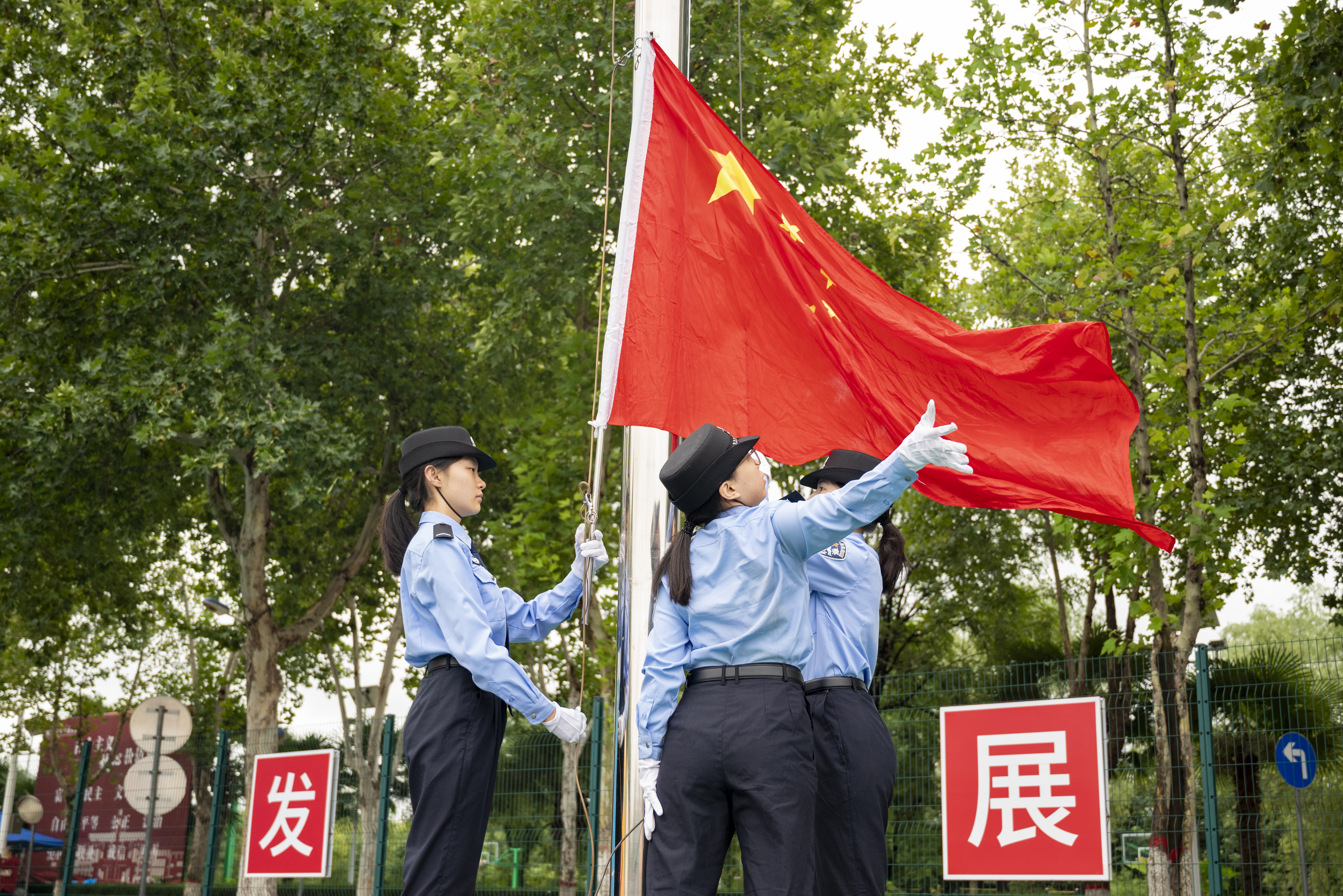 伴随着庄严的国歌,五星红旗冉冉升起,全场师生肃立注目,开学典礼拉开序幕。
