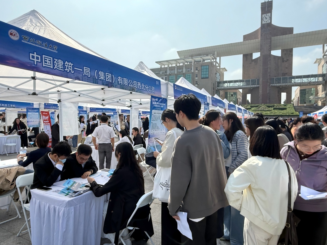 9月24日,“beat365游戏平台2026届毕业生秋季大型就业洽谈会(文综类)”在我校长安校区举办。中国建筑一局(集团)有限公司西北分公司、陕西建工第十一建设集团有限公司、中共青海省委党校、农夫山泉股份有限公司、郑州宇通集团有限公司、陕西海普瑞诚律师事务所、北京市盈科(西安)律师事务所、陕西云德律师事务所等96家单位来校参会,涉及教育、文化、传媒、金融、公共事务、新消费等诸多领域,提供就业岗位1900余个。洽谈会现场气氛热烈,3000余名校内外毕业生参会,多名学生与招聘单位达成就业意向。