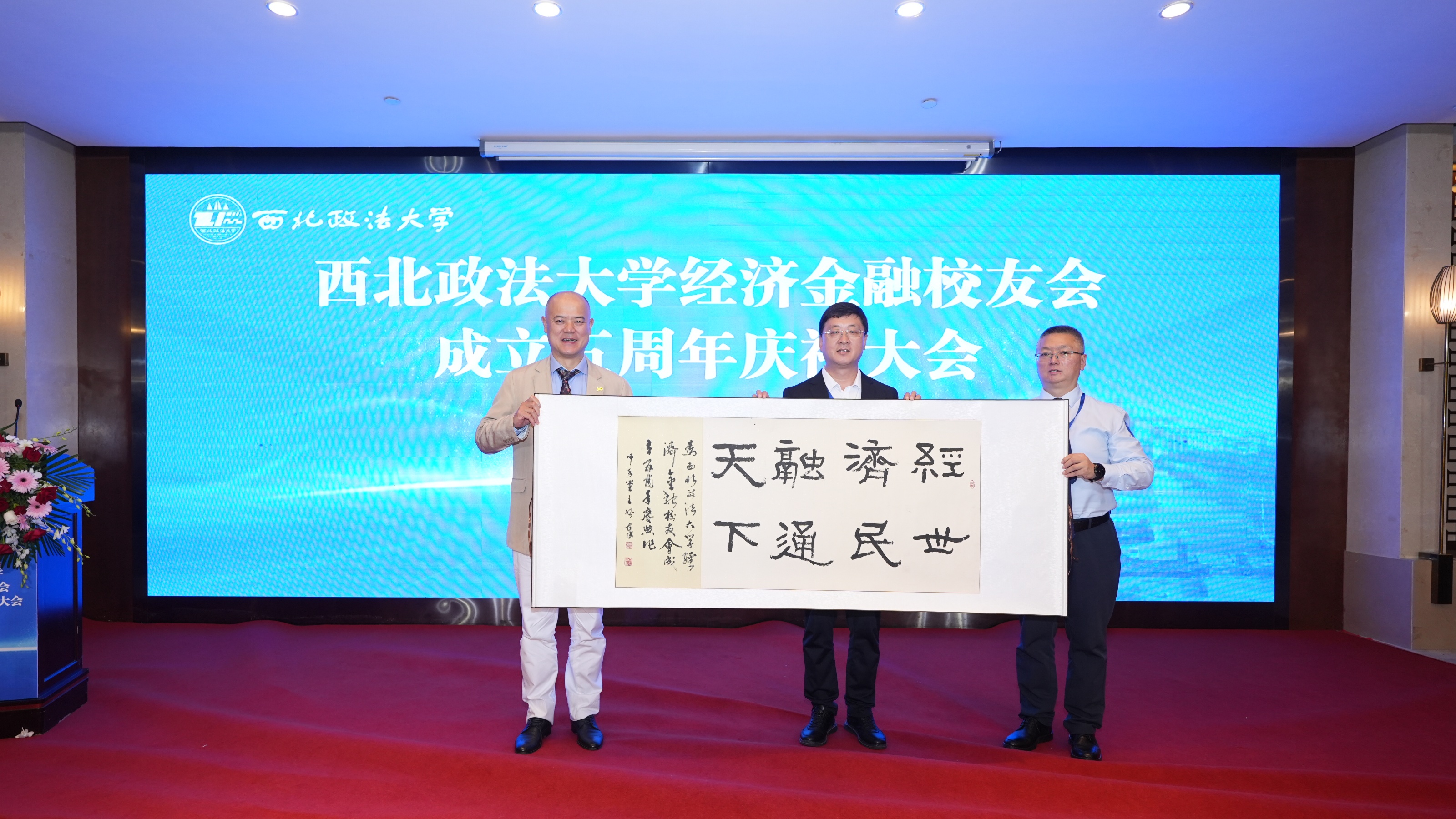 经济金融北京校友会副会长赵健冬,习战鹏主持互动交流环节。西安交通大学、北京工商大学及我校大湾区校友会代表致贺。大会表彰樊月鹏(特殊贡献奖)及赵军等9名杰出工作奖校友,校领导及嘉宾中国社会科学院学部委员孙宪忠教授、清华大学施天涛教授等为获奖校友颁奖。校友总会秘书长刘霖杰代表校友总会赠送贺礼。王振平会长总结了经济金融北京校友会过往工作,回顾了校友会在凝聚力量、搭建平台、助力校友及母校发展上的努力与成果。