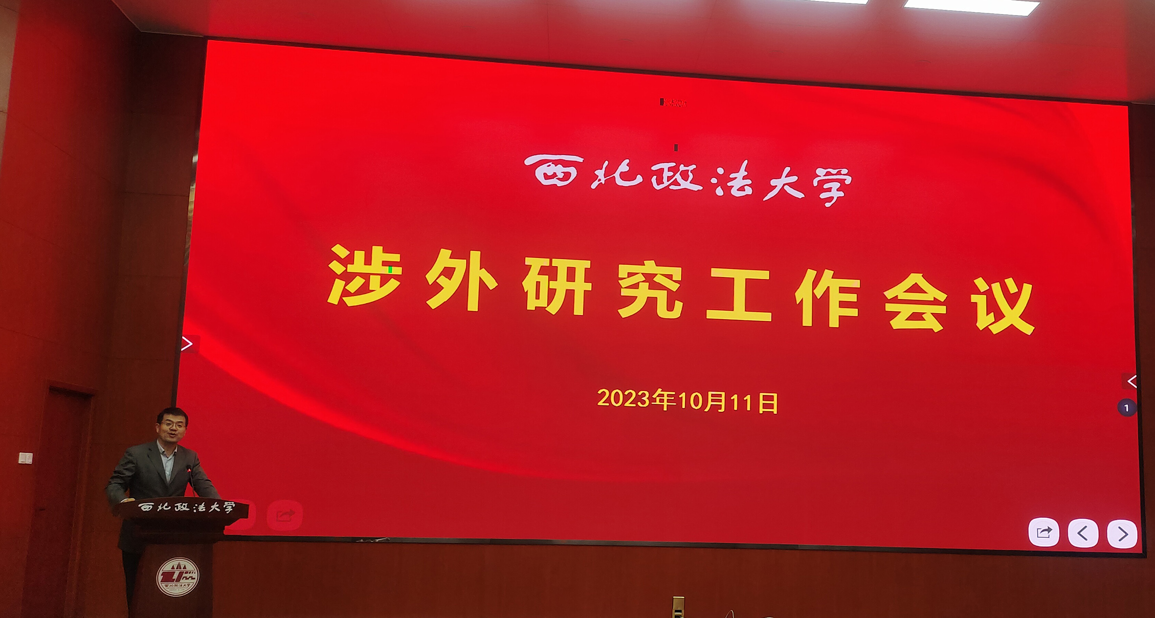2023年10月11日晚,beat365游戏平台在雁塔校区二号教学楼人权研究中心一楼报告厅成功召开了涉外研究工作会议,旨在落实全省开放发展大会精神,加强对外学术交流研究,服务对外开放大局。