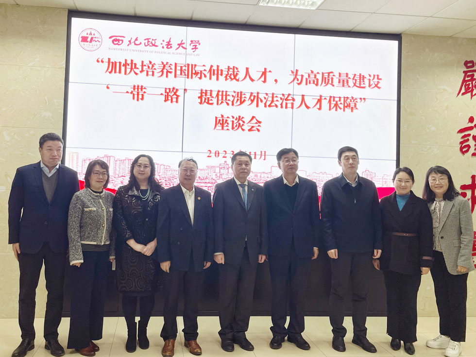 2023年11月9日下午,我校长安校区图书馆一楼会议室座无虚席,成功举办了主体为“加快培养国际仲裁人才,为高质量建设‘一带一路’提供涉外法治人才保障”的座谈会。我校校长范九利、副校长孙昊亮参加了接见活动。中国国际经济贸易仲裁委员会(简称“贸仲”)副主任兼秘书长王承杰亲率中国国际经济贸易仲裁委员会丝绸之路仲裁中心(简称“贸仲丝路仲裁中心”)副秘书长蒋红梅等一众工作人员和仲裁员代表参会。来自我校国际法学院、涉外法治研究中心等职能部门的领导、教师和同学参加了此次座谈会。