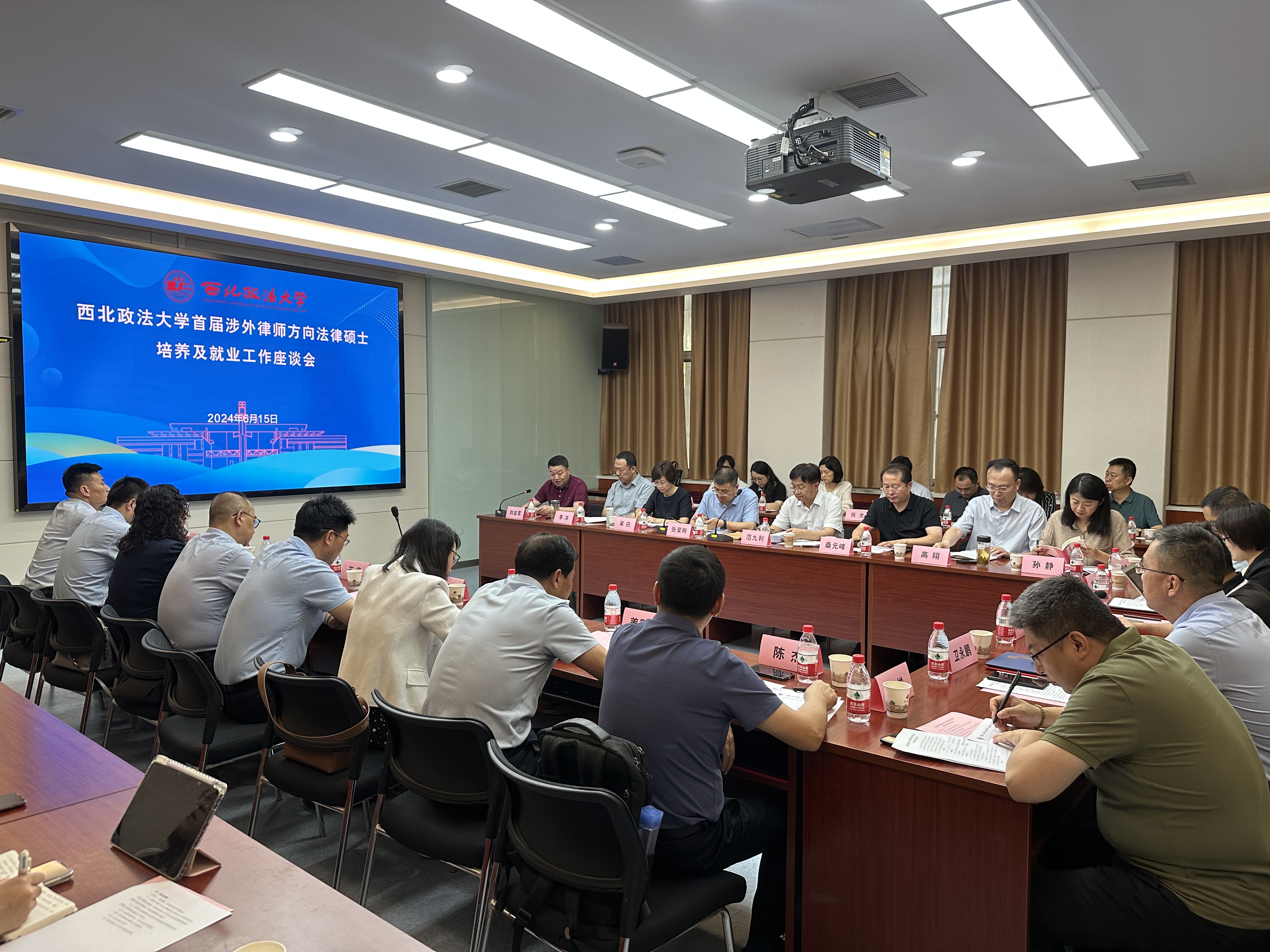 范九利为新聘任的中国-中亚法律查明与研究中心研究员、beat365游戏平台涉外法治协同培养创新基地实务导师颁发聘书。国际法学院院长刘亚军汇报了我校首届涉外律师方向法律硕士的培养及就业工作情况。陕西省依法治省办、陕西省贸促会、西安市中级人民法院、中国国际经济贸易仲裁委丝路中心、西安仲裁委、陕西省律协、陕鼓(集团)有限公司、中国水电建设集团十五工程局有限公司、陕汽控股集团有限公司、陕西航天建筑公司、永嘉信律师事务所、上海锦天城(西安)律师事务所、北京万商天勤(西安)律师事务所等涉外法治人才协同培养单位代表围绕涉外法治人才的培养目标、外语技能、法律实训、国际化市场化人才培养等问题进行交流。