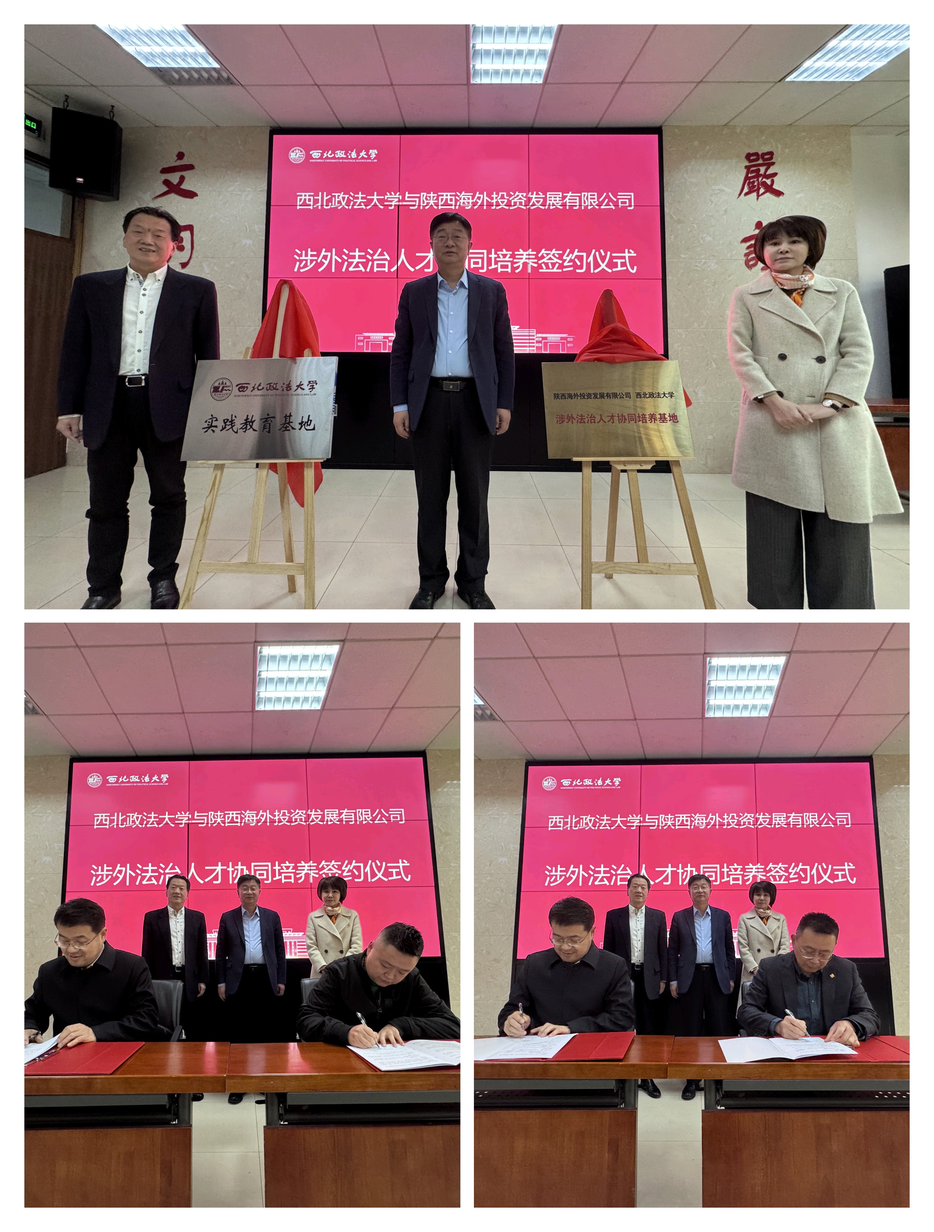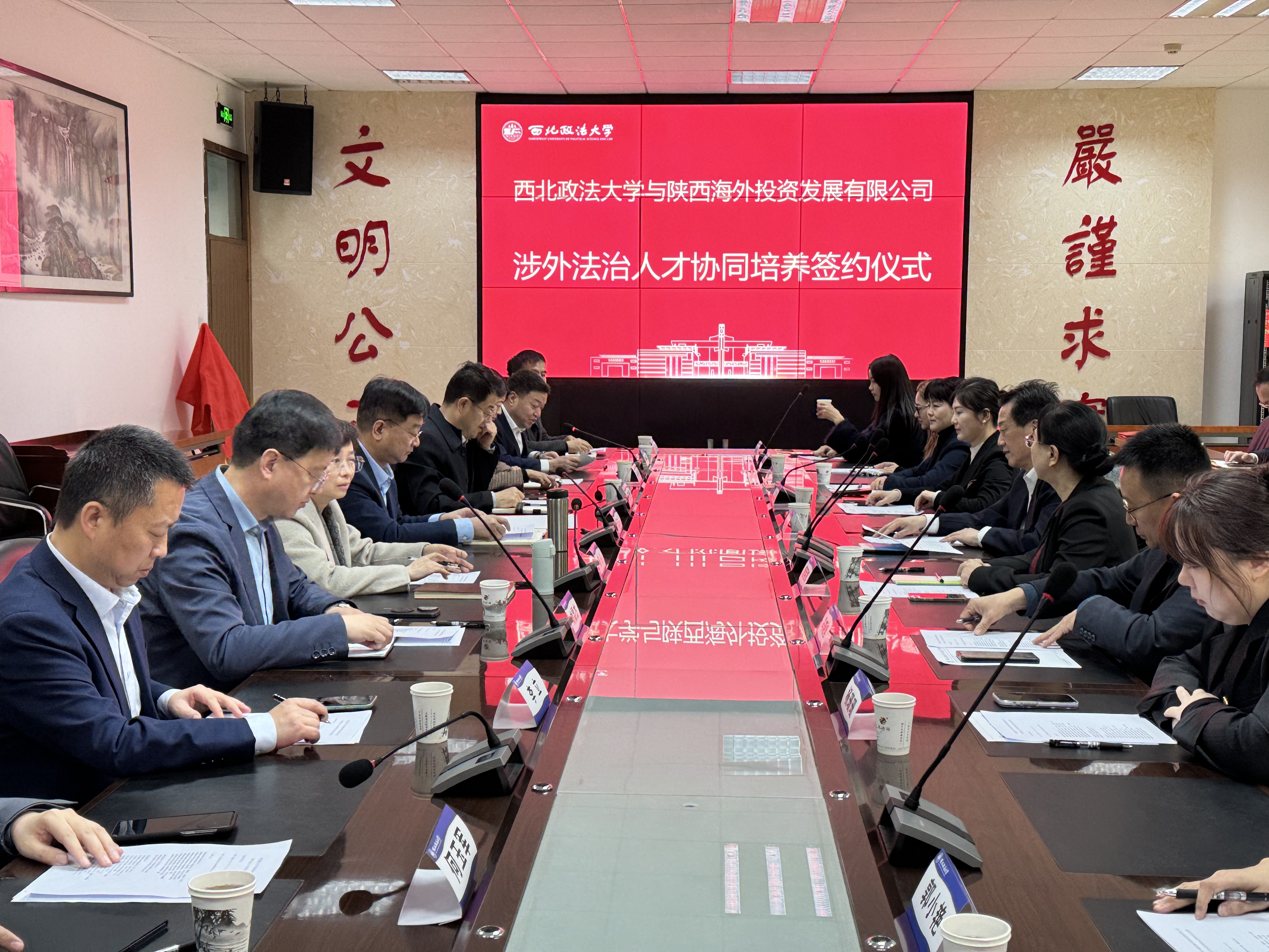 为提升涉外法治人才培养水平,合力搭建涉外法治服务高地,3月7日上午,我校与陕西海外发展投资有限公司涉外法治人才协同培养签约仪式暨揭牌仪式在长安校区图书馆一楼会议室举行。我校校长范九利、副校长张荣刚,陕西海外投资发展有限公司党委书记、董事长王东红,陕西金泰多元工贸有限公司董事长郭小艳等校企代表出席,国际法学院院长刘亚军主持。