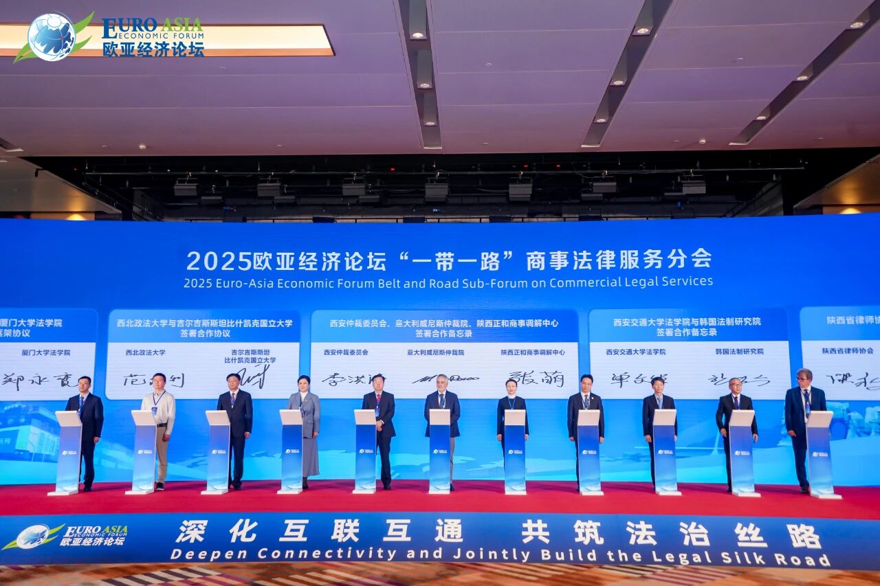 2025欧亚经济论坛在千年古都西安盛大开幕,古丝绸之路的起点再次成为联通欧亚的合作之桥。来自哈萨克斯坦、乌兹别克斯坦、俄罗斯、西班牙、英国、印度尼西亚等40个国家和地区的政府官员、工商界领袖、知名学者及国际组织代表齐聚一堂,围绕产能合作、规则共建、人文交融、科技创新、协同治理等五大主题板块展开深入研讨与交流,共同探寻在新形势下推进“一带一路”高质量发展的新思路、新路径。大会不仅展示了多边合作的广阔前景,也为推动区域经济一体化、加强政策与规则对接提供了务实举措。我校校长范九利一行应邀出席论坛开幕式暨全体大会,并参加“一带一路”商事法律服务分会,就跨境商事法律合作、域外法律查明与争端解决机制建设等议题展开交流,积极为服务“一带一路”法治化营商环境贡献学术智慧和教育力量。