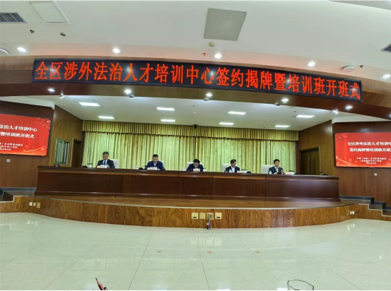2024425,新疆维吾尔自治区全区涉外法治人才培训中心签约揭牌暨培训班开班仪式在乌鲁木齐举行。新疆维吾尔自治区党委常委、政法委书记陈明国、自治区党委政法委副书记吾买尔江-那买提,自治区司法厅党委书记刘建胜、副厅长谭磊,自治区高级人民法院副院长周志豪、张疆华,自治区人民检察院副检察长黄琳,联合国国际法委员会委员、外交部国际法咨询委员会主任委员黄惠康,青岛大学党委书记、中国-上海合作组织经贸法律服务研究院理事长肖江南,上海政法学院副院长、中国-上合组织国际司法交流合作培训基地办公室常务副主任罗立刚等领导出席揭牌仪式。来自新疆自治区高级人民法院、检察院、国家安全厅、兵团法院、兵团检察院、中国新疆自由贸易区乌鲁木齐片区、霍尔果斯片区、喀什片区,自治区司法厅、律师协会、贸促会和乌鲁木齐仲裁委员会等23个单位的一百余法律工作者参加培训。