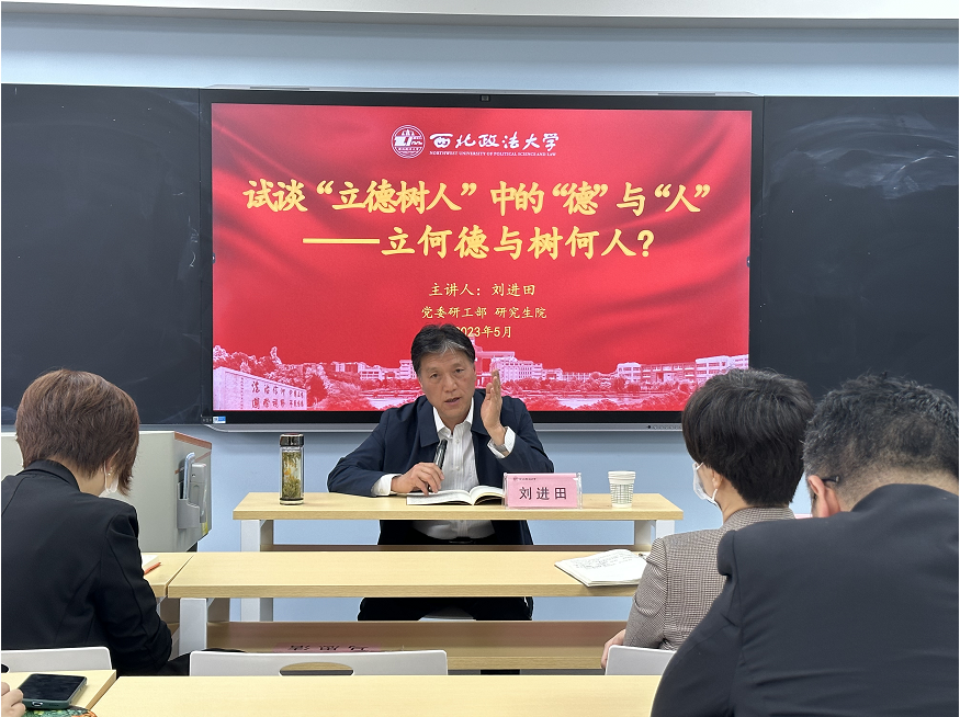 为深入推进学习贯彻习近平新时代中国特色社会主义思想主题教育,聚焦“三个年”活动和师德师风建设,5月25日下午,党委研工部、研究生院在雁塔校区举办“立德树人担使命 培根铸魂育新人”2023年度研究生新任导师、研究生辅导员培训第二讲活动,邀请我校马克思主义学院二级教授刘进田作题为《试谈‘立德树人’中的‘德’与‘人’——立何德与树何人?》的专题讲座。活动由研工部副部长、研究生院副院长李洋主持。