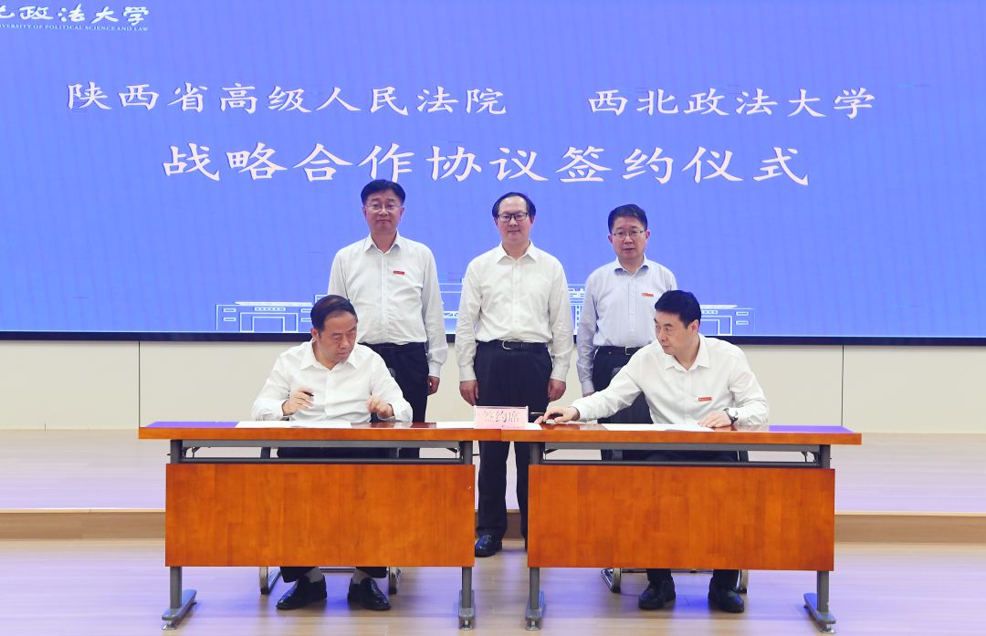 6月7日上午,我校与陕西省高级人民法院战略合作协议签约仪式在长安校区举行。陕西高院党组书记、院长韩德洋,副院长巩富文,校党委书记孙国华,副校长孙昊亮,韩松教授,王周户教授,王政勋教授,李永宁教授出席仪式,巩富文与孙昊亮代表双方签署协议。签约仪式由校长范九利主持。